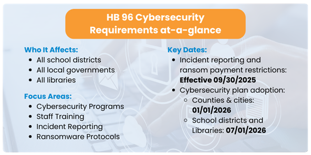 For schools, the stakes are especially high. From protecting student data to maintaining an uninterrupted learning environment, compliance with the new requirements included in HB96 is not only a legal requirement but also a critical safeguard for all of Ohio’s school districts.