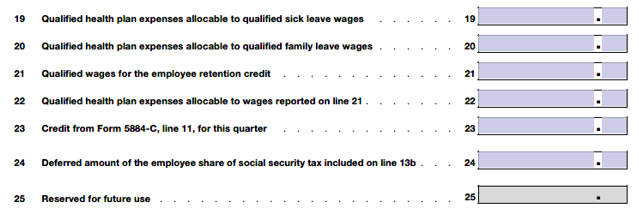 Lines 19-25 are the amounts used on Worksheet 1 to calculate the Employer Tax Credits: